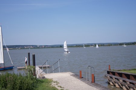 Unser "Seglerhäuschen" befindet sich direkt am Radweg, der um den See führt. Von weitem zu erkennen an den vielen bunten Fahnen und nicht zu verfehlen!